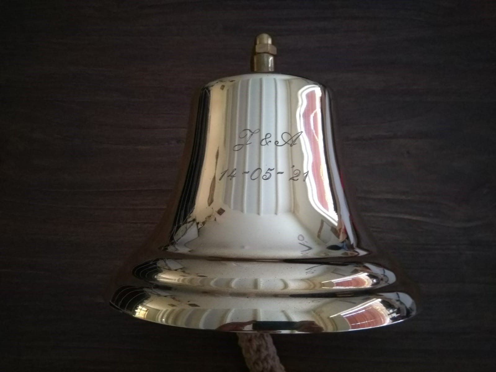 Letters Amsterdam is hét adres voor het graveren van uw scheepsbel. Wij werken samen met scheepswinkel Andries de Jong in Amsterdam en we zijn bijna dagelijks bij ze in de buurt dus berekenen we geen kosten voor het bij Andries de Jong ophalen van de scheepsbel. Het graveren van de scheepsbel doen we op authentieke wijze waardoor er een zeer mooie nostalgische gravure ontstaat. Voor het graveren van een scheepsbel is heel veel mogelijk. De gravure kan bestaan uit letters of uw logo of een combinatie daarvan.